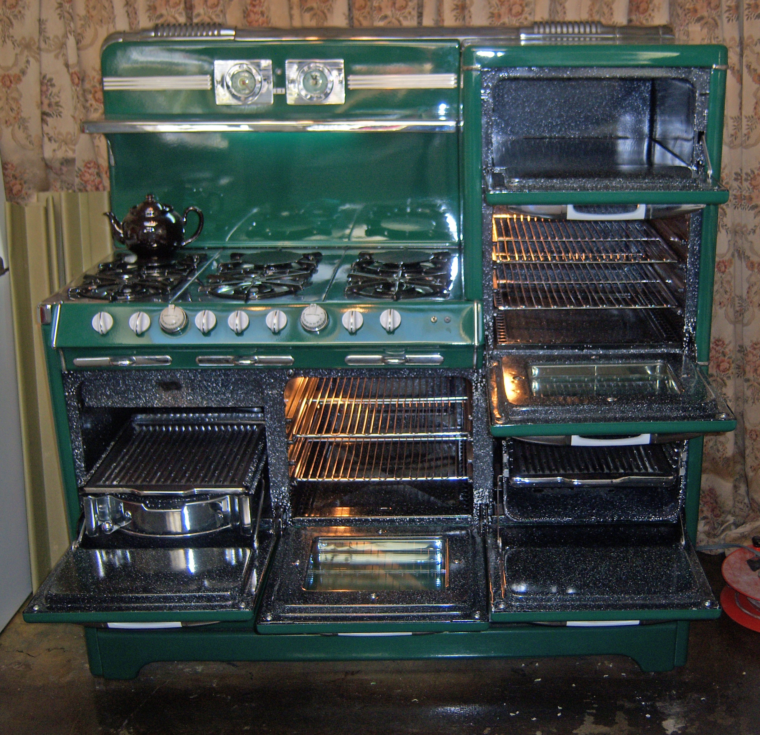 O&M T&C Opened up Right Stack Warming Oven Oven Broiler below Center Oven Left side"Grillavator" Left top 6 Burners Share this:Tweet Click to email a link to a friend (Opens in new window) Email Like Loading...